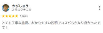 福岡県八女市の脱毛サロン つるりへの口コミ「説明がわかりやすくて、施術も丁寧でした」(かぴしゅう様)